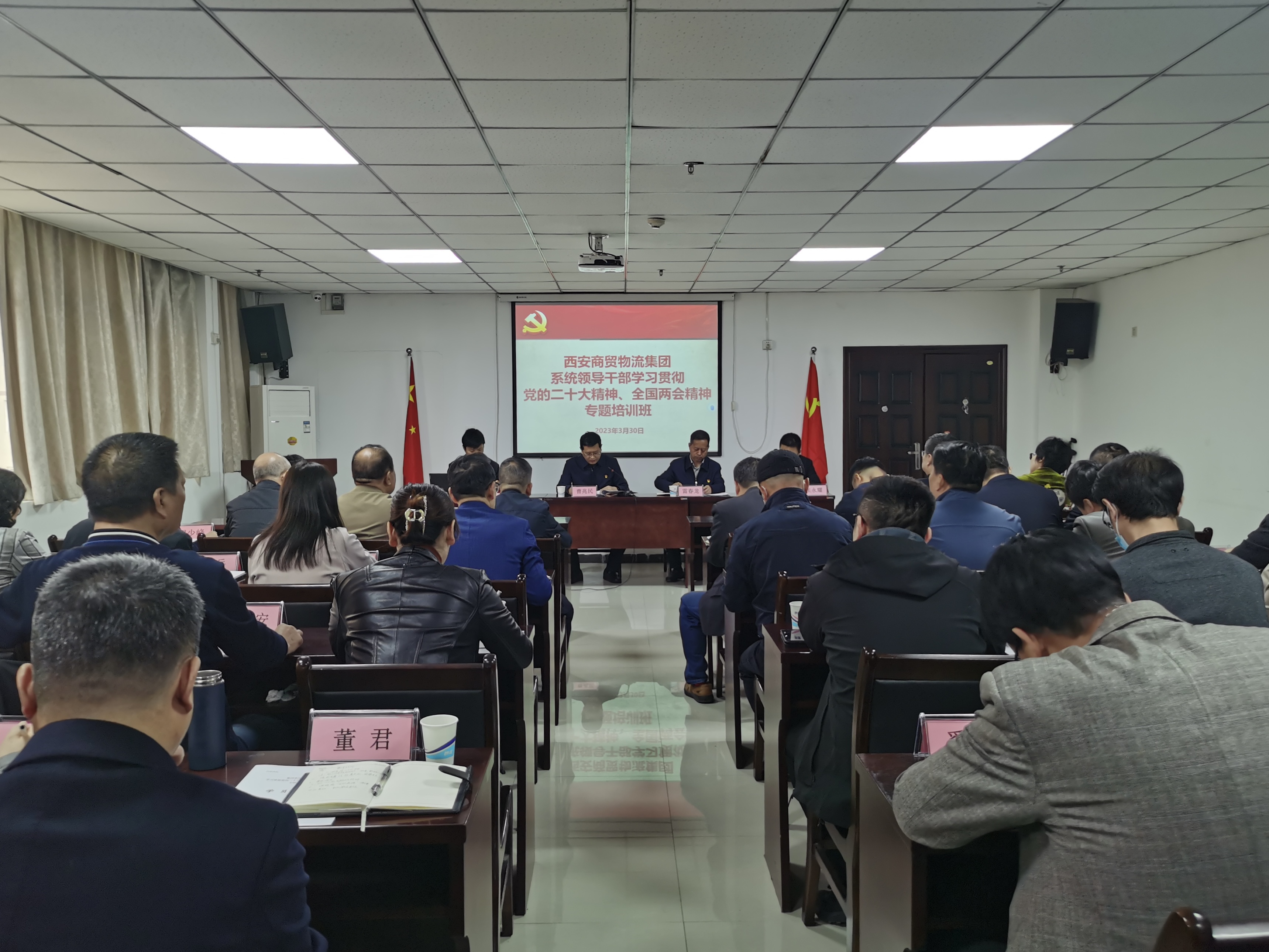 3月30日上午,系統(tǒng)黨員領(lǐng)導干部學習貫徹黨的二十大及全國兩會精神專題培訓班在西安市物資職工中等專業(yè)學校舉行??偛扛鞑块T負責人、各單位領(lǐng)導班子成員參加培訓。開班儀式上,集團黨委書記、董事長曹兆民做了開班動員講話。他指出,學習貫徹黨的二十大及全國兩會精神,是當前和今后一個時期的首要政治任務(wù),參訓學員作為集團黨的建設(shè)和經(jīng)營發(fā)展的“關(guān)鍵少數(shù)”,要珍惜這次集中培訓的機會,深刻領(lǐng)悟,學有所得、學有所思、學有所悟,要以上率下“帶起來”、結(jié)合實際“融起來”,方式方法“實起來”,在政治過硬提升本領(lǐng)上見成效、在圍繞中心服務(wù)大局上見成效、在清廉建設(shè)增強活力上見成效,以“時時放心不下”的責任感、“事事落實到位”的執(zhí)行力,以“持續(xù)改進、追求卓越”的良好作風,學習落實好黨的二十大及全國兩會精神,在打造服務(wù)產(chǎn)業(yè)發(fā)展和民生保障的大型現(xiàn)代商貿(mào)物流投資集團的事業(yè)中取得新的更大成績。