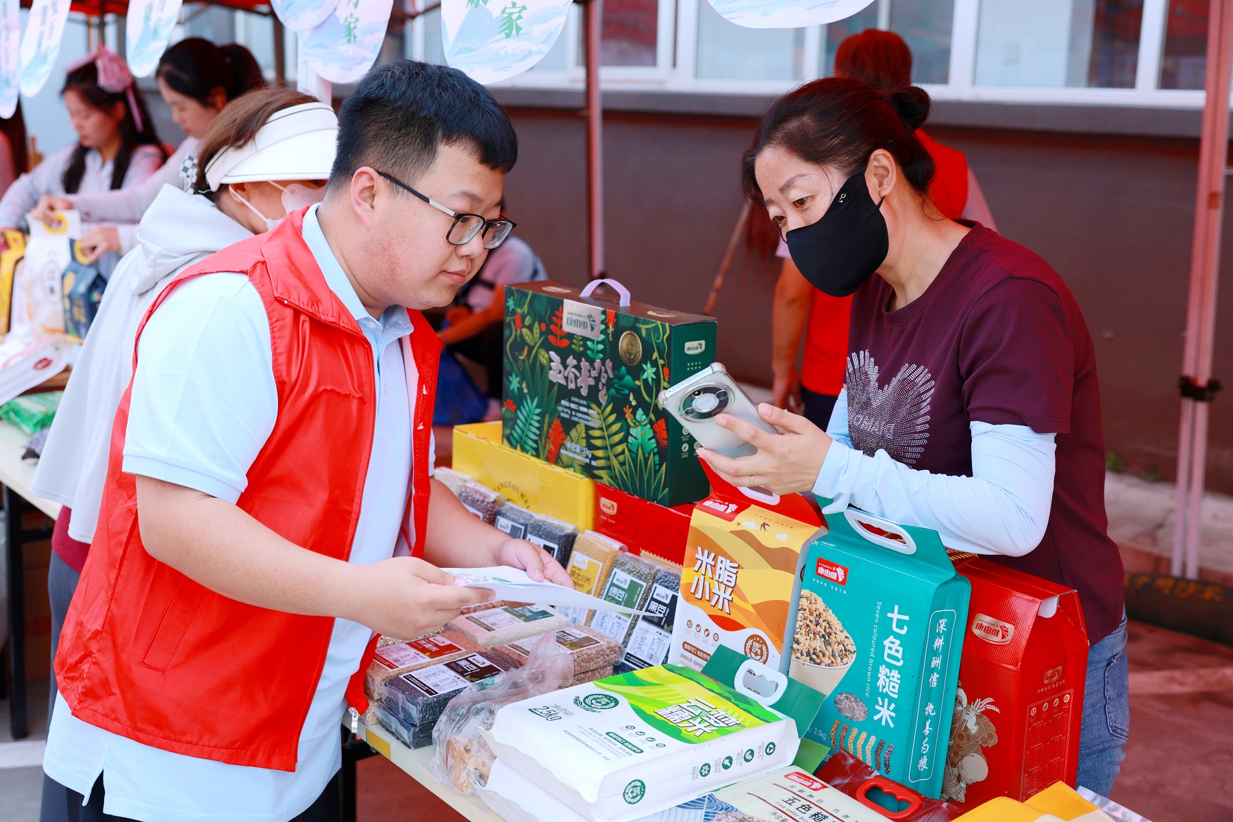 活動現(xiàn)場特別設立了“大健康糧油”專區(qū),精心陳列了50余種優(yōu)質雜糧產品,并通過生動的科普宣傳,詳細介紹了各類雜糧的獨特功效。活動通過線上線下同步推廣,吸引了超千人參與交流互動,現(xiàn)場氣氛熱烈,帶動消費金額近萬元。同時,黨建品牌“金麥穗”服務隊為活動提供了全方位的貼心保障,現(xiàn)場不僅免費為群眾測量血壓,還舉辦了專業(yè)的中醫(yī)健康講座,為群眾送上了實實在在的健康關懷。